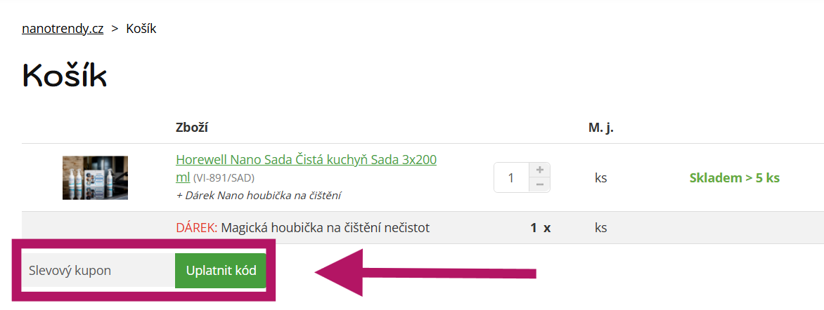 E-shop Nanotrendy.cz se zaměřuje na prodej produktů obohacených o nanotechnologie. Jedná se především o produkty drogistické, stavebniny nebo hobby, případně výrobky péče o domácnost i komerční prostory. V nabídce tak najdete primárně přípravky pro ošetřování povrchů v pokročilém provedení s vysoce antibakteriálním účinkem, přípravky jsou určeny jak na klasické povrchy, tedy, sklo, kovy, keramika (sanitární prostory, kuchyňské provozy), tak na textil či čalounění nebo na dřevo a do exteriéru (péče o fasádu, střechu apod.). Kromě uvedeného e-shop nabízí také přípravky péče o solární panely, autokosmetiku, speciální lepidla apod. Přípravky je možné objednat se slevou v rámce speciálních nabídek nebo slevových akcí, navíc lze také uplatnit slevový kupón s kódem, který se zadává během nákupu.