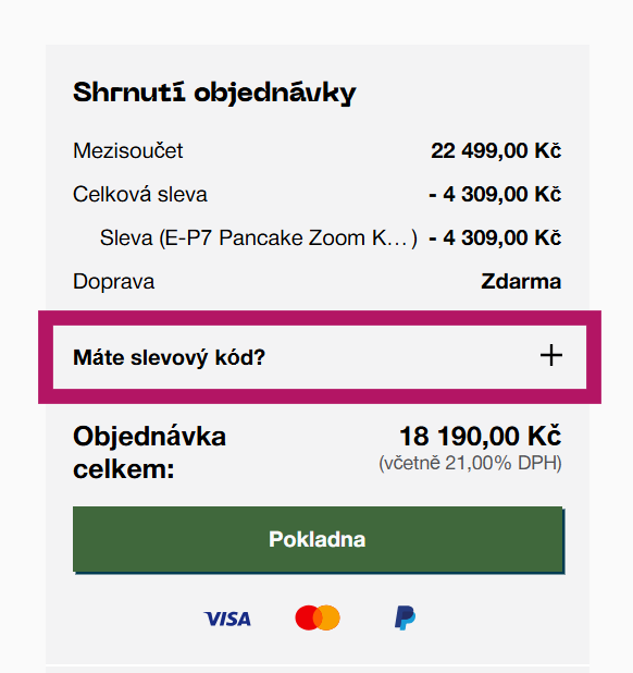 Uplatnění slevového kódu na OM System