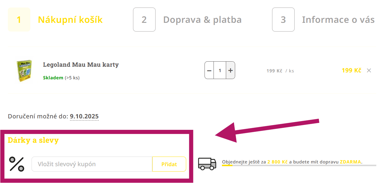Uplatnění slevového kupónu na Outlet-hraček.cz
